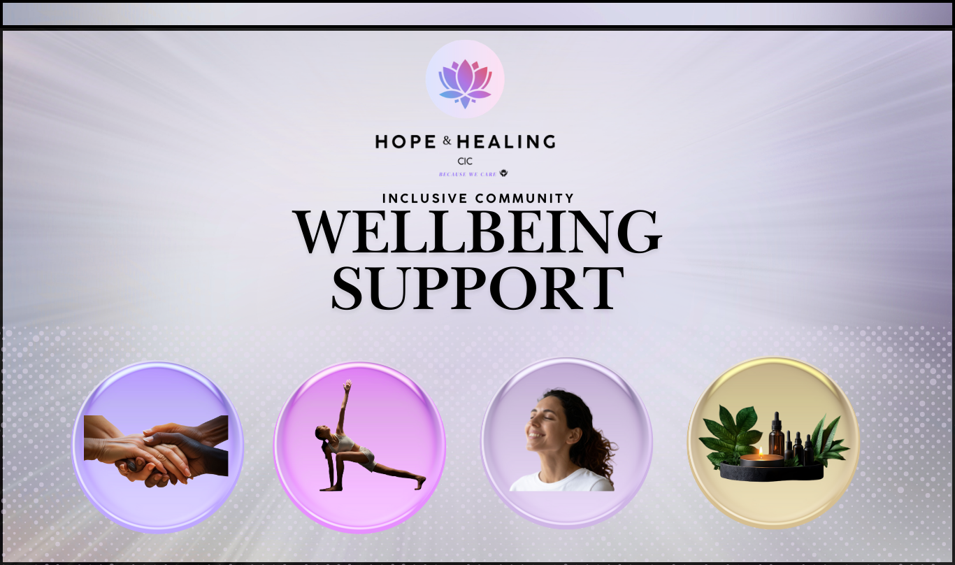 Hope & Healing CIC is rooted in the belief that wellbeing should be accessible, inclusive, and grounded in real life. We exist to support adults aged 18 and over who may be experiencing disadvantage due to social, economic, health, or life circumstances, by offering practical, non-clinical wellbeing support that feels welcoming and achievable.